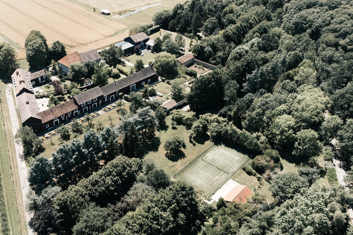 Il s’étend sur environ 2300 M² de bâti et 3 hectares de terrain, comprend 12 chambres et un studio, et est entouré de champs de blé à perte de vue. Il se compose de trois maisons principales et d’une maison de gardien.